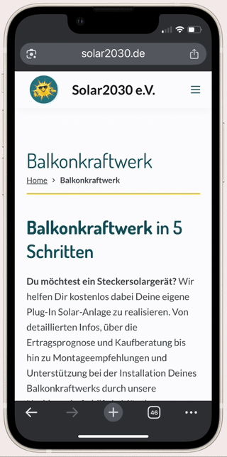 Solar2030 e.V. is a Munich-based nonprofit working to put solar power on as many city rooftops as possible by 2030. Their old Wordpress site built with Elementor was slow, cluttered, and hard to navigate—especially on mobile. Content had become overwhelming, typography inconsistent, and the brand colors made readability difficult. With rebranding off the table, the challenge was to elevate the existing identity without changing the logo.